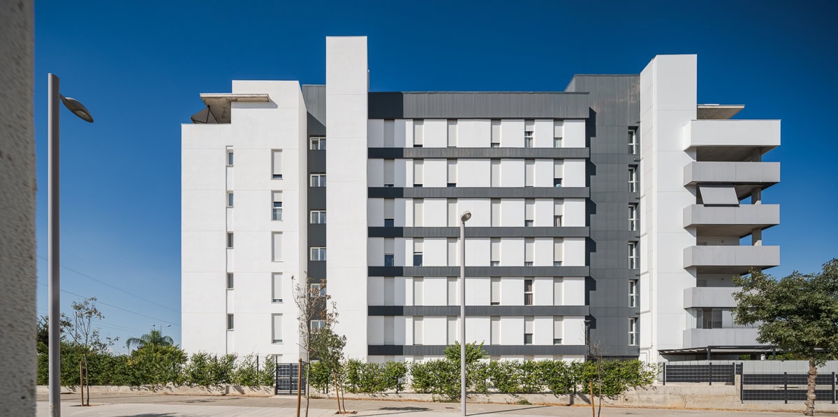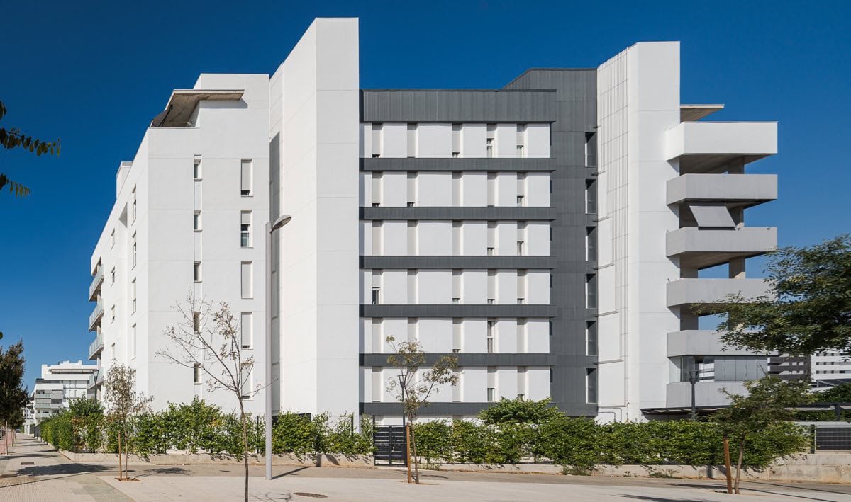 Situada en el proyecto urbano de Entrenúcleos en Dos Hermanas, a escasa distancia de la ciudad de Sevilla, se desarrolla Residencial Selecta Apolo. Este proyecto de 108 viviendas se inserta en una parcela rectangular delimitada por la Avenida de las Universidades, la calle Manuel Ríos Moreno y dos calles peatonales.